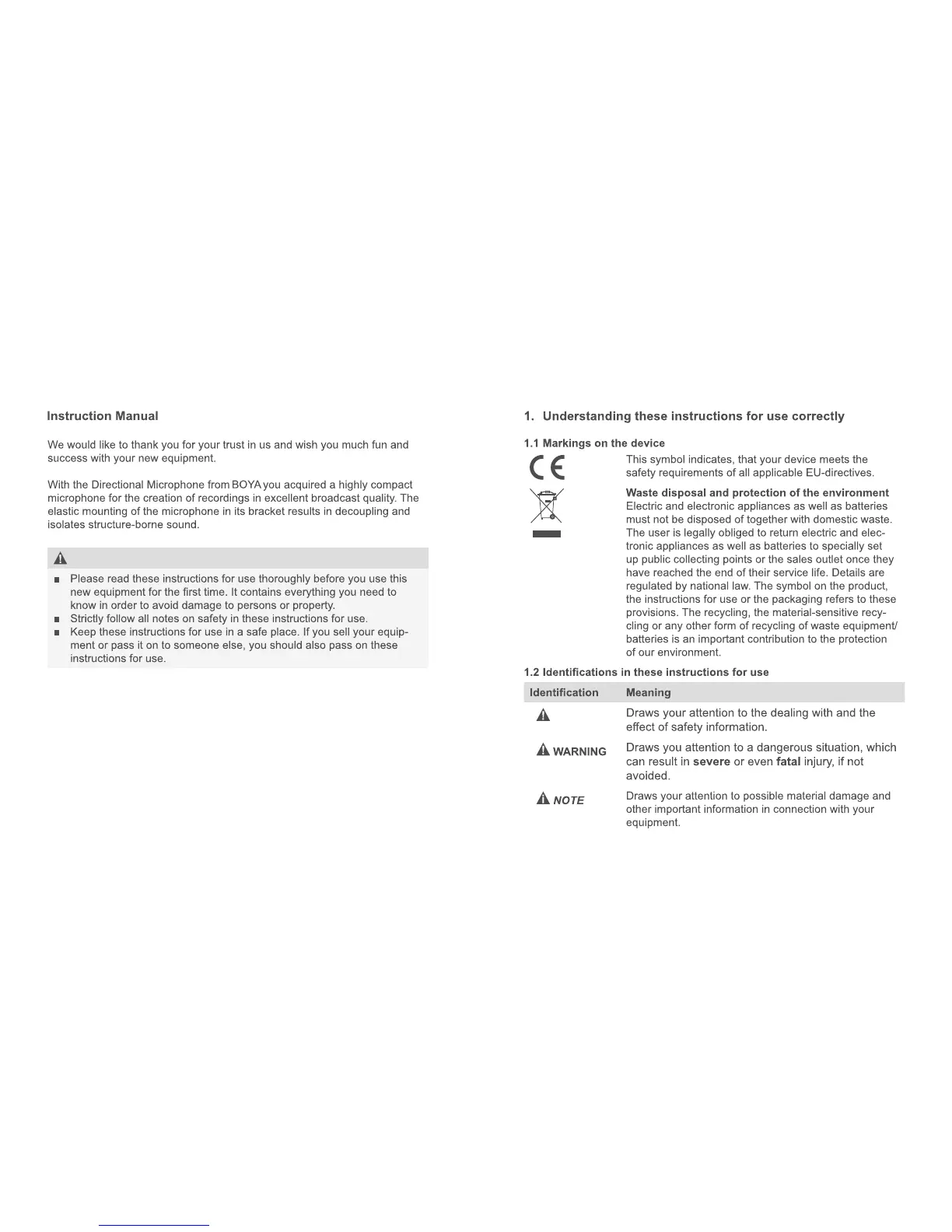 Boya BY-VM01 - Understanding Instructions and Markings; Device Markings and Disposal Information; Instruction Identification Symbols