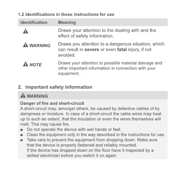 Boya BY-VM190 - Identifications in these instructions for use; Important safety information