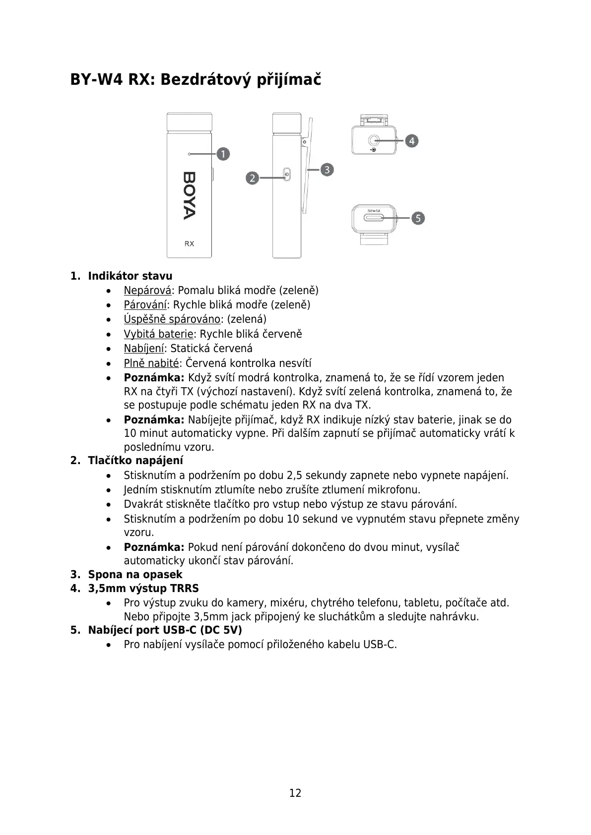 Pro nabíjení vysílače pomocí přiloženého kabelu USB-C.