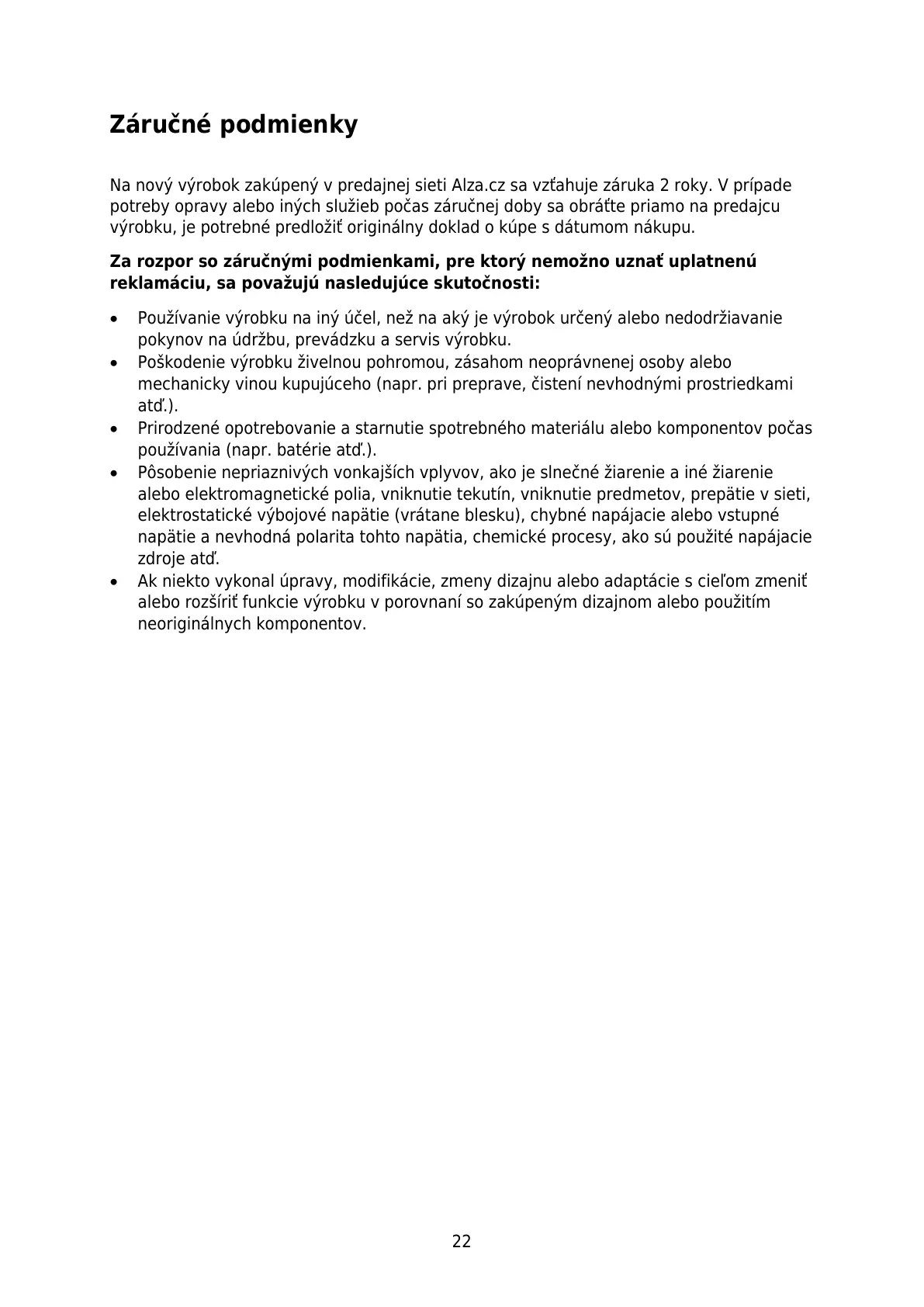 Na nový výrobok zakúpený v predajnej sieti Alza.cz sa vzťahuje záruka 2 roky. V prípade