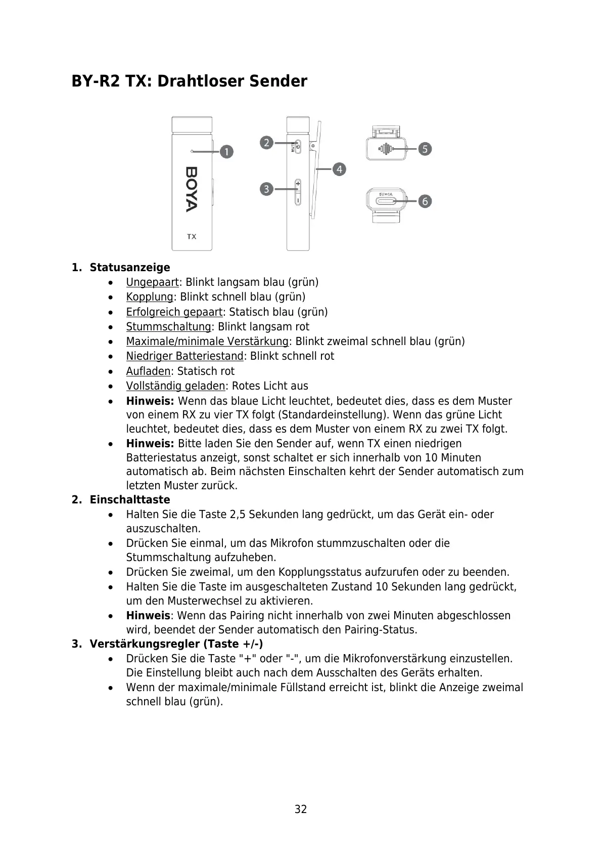 Hinweis: Bitte laden Sie den Sender auf, wenn TX einen niedrigen