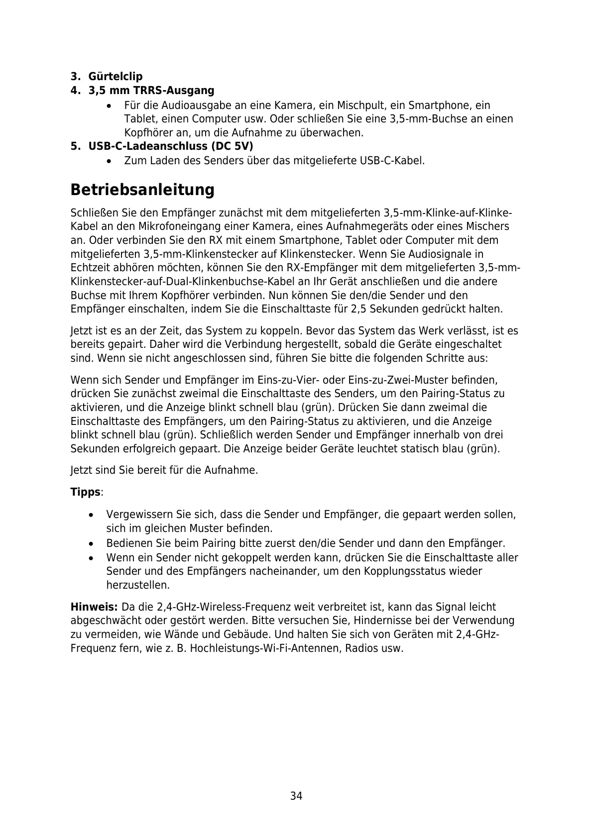 Bedienen Sie beim Pairing bitte zuerst den/die Sender und dann den Empfänger.