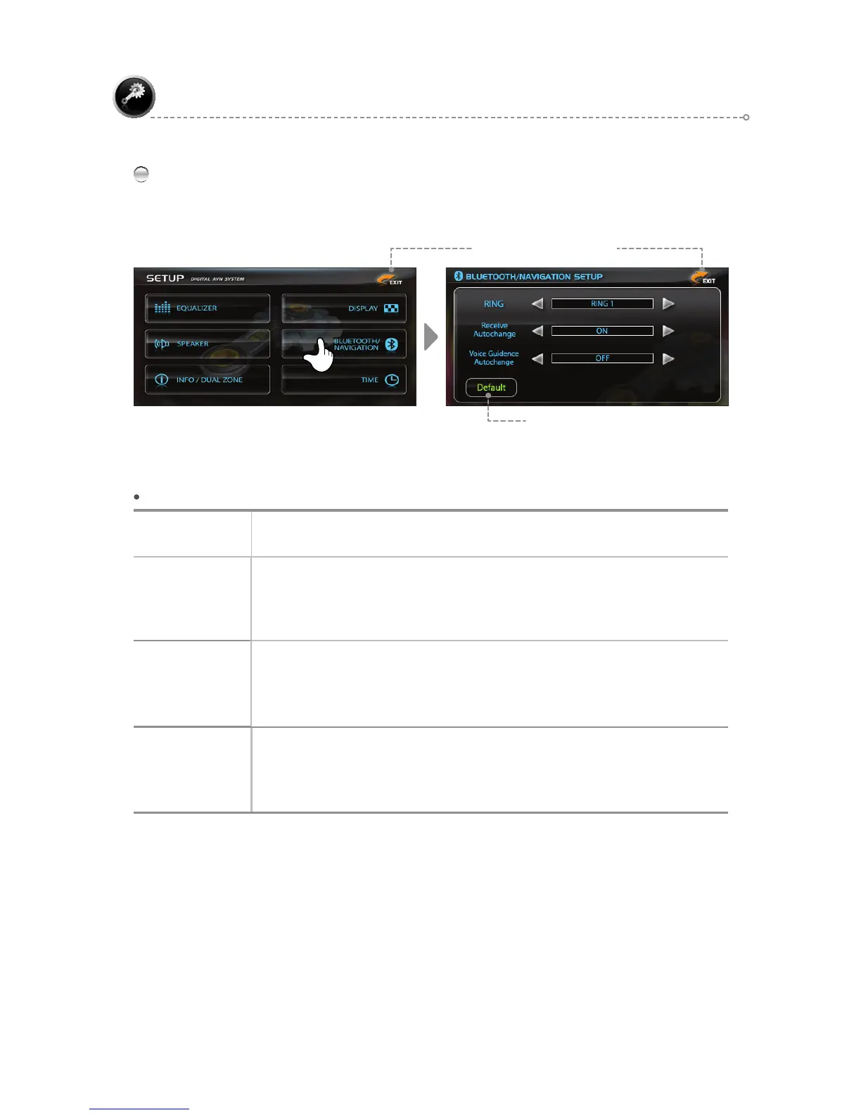 BLUETOOTH / NAVIGATION – Menu Description