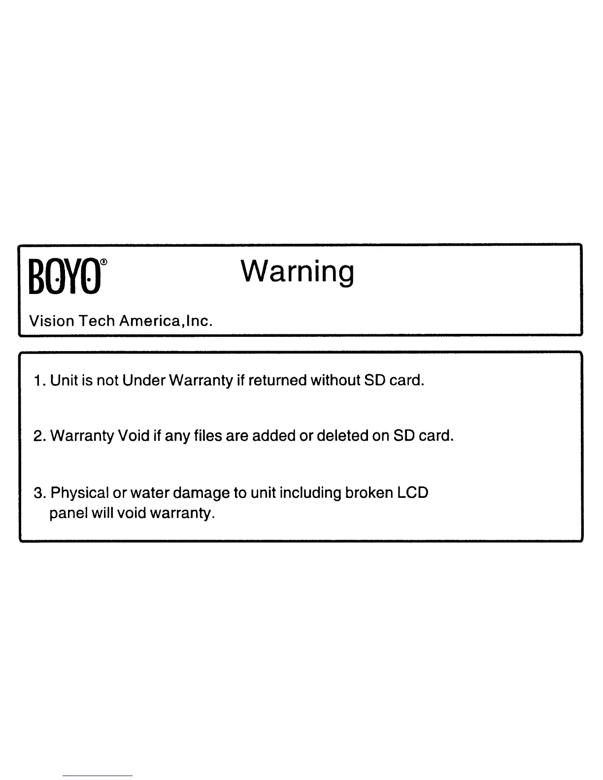 2. Warranty Void if any files are added or deleted on