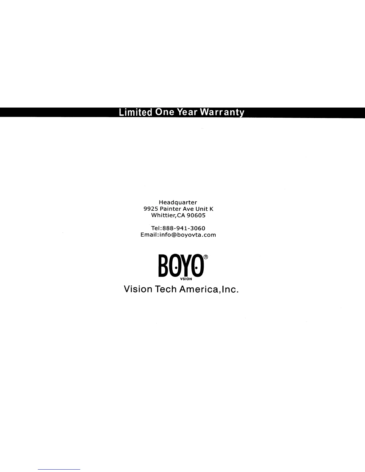 Boyo AVN700A - Limited One Year Warranty