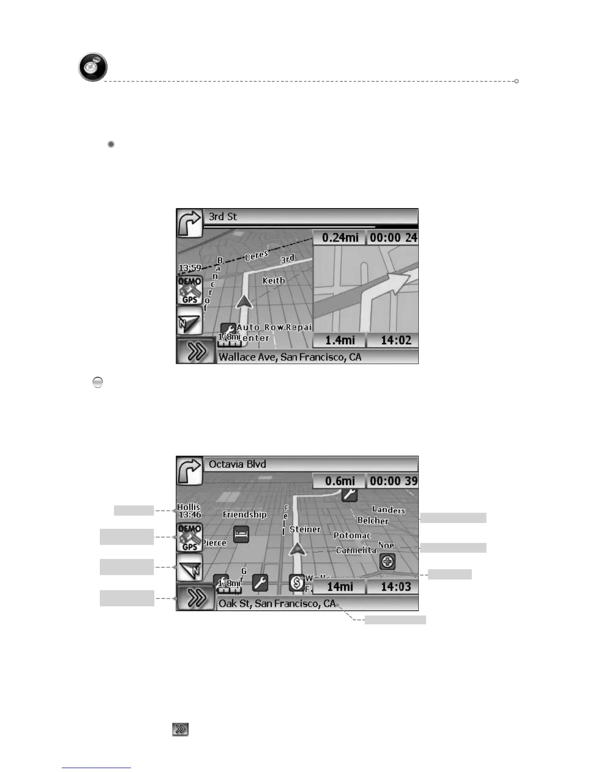 Just before a turn point, the guidance display will show a close-up or “true view” of