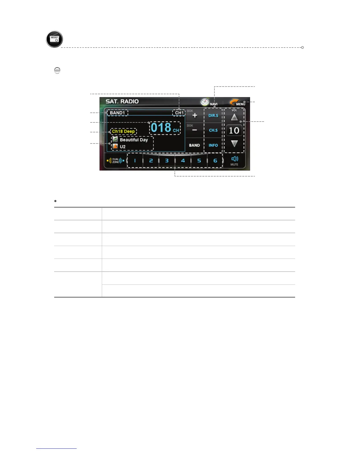 Boyo AVN700A - SATELLITE RADIO; SAT.Radio Main Screen; SAT.RADIO Function Icons