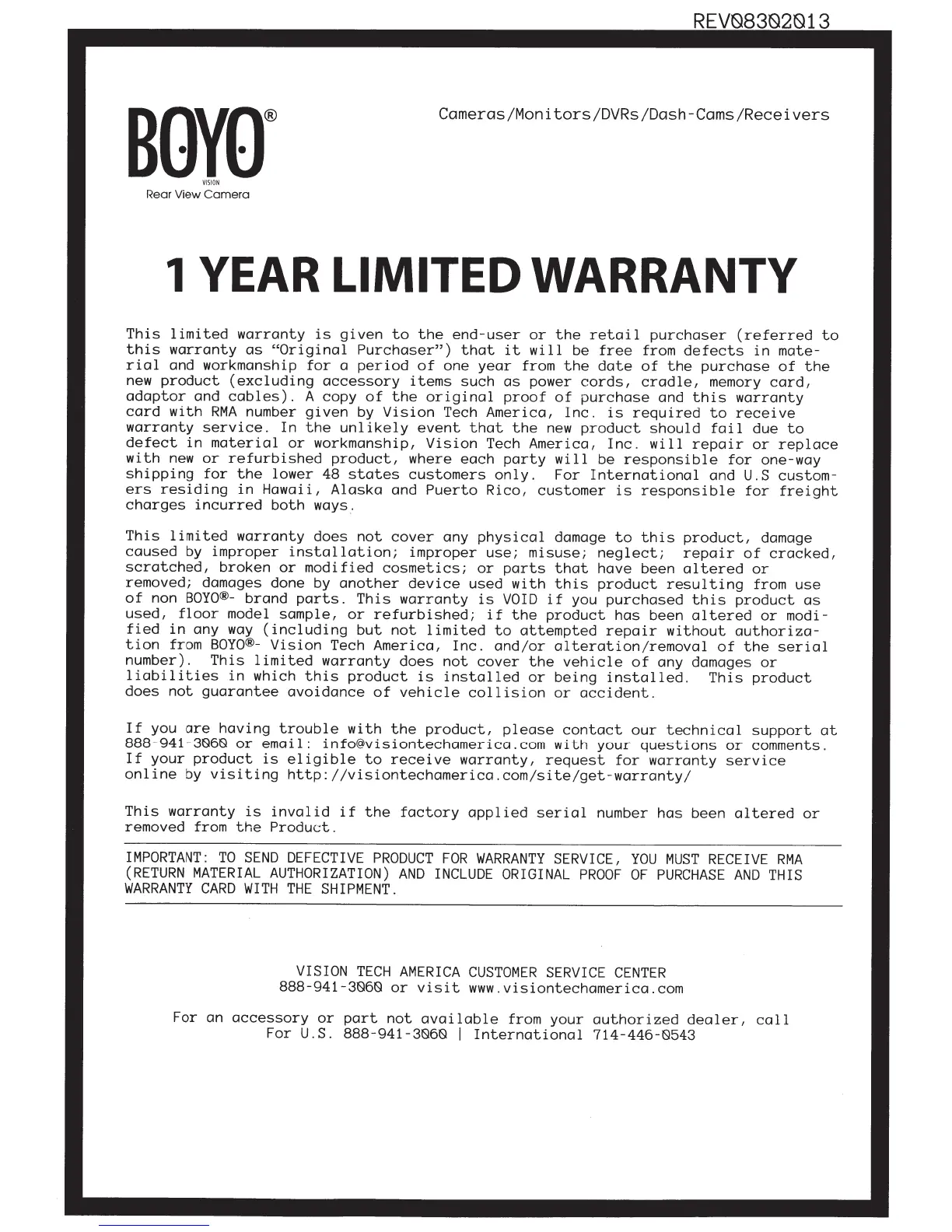 Boyo VTL17LTJ - Limited Warranty Information; Warranty Service Requirements; Warranty Exclusions; Technical Support & Claims