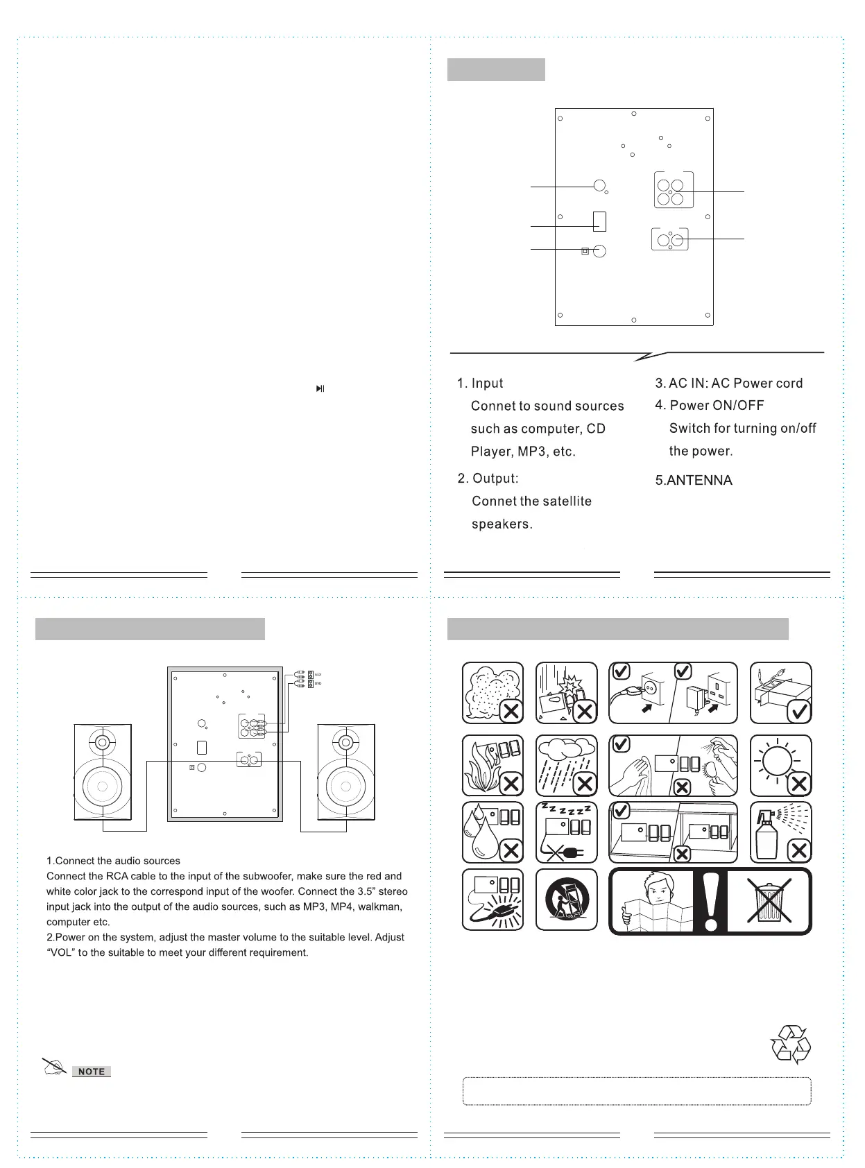 * Do not leave objects generating magnetism near the speakers.