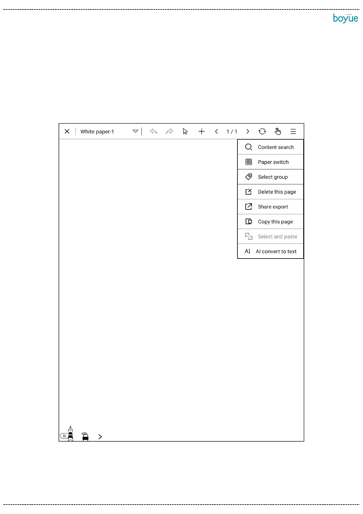 note exit, quickly switch notes, undo, redo, select, add pages, turn pages, page