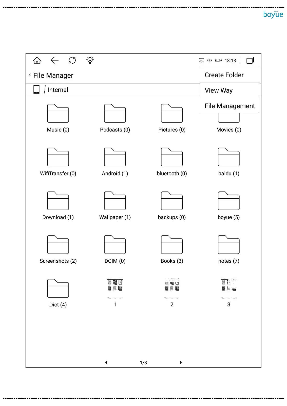 Clicking Internal to enter the file manager, including search, new folder, view Way
