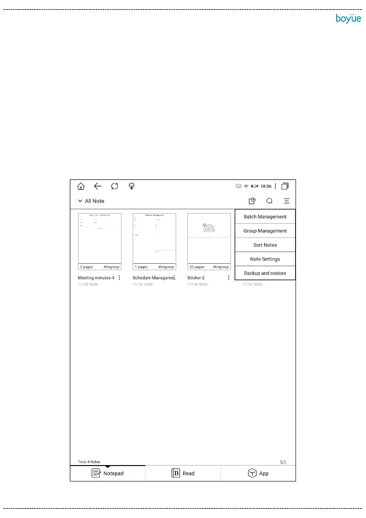 “More features” for Batch Management, Group Management, Sort Notes and Note