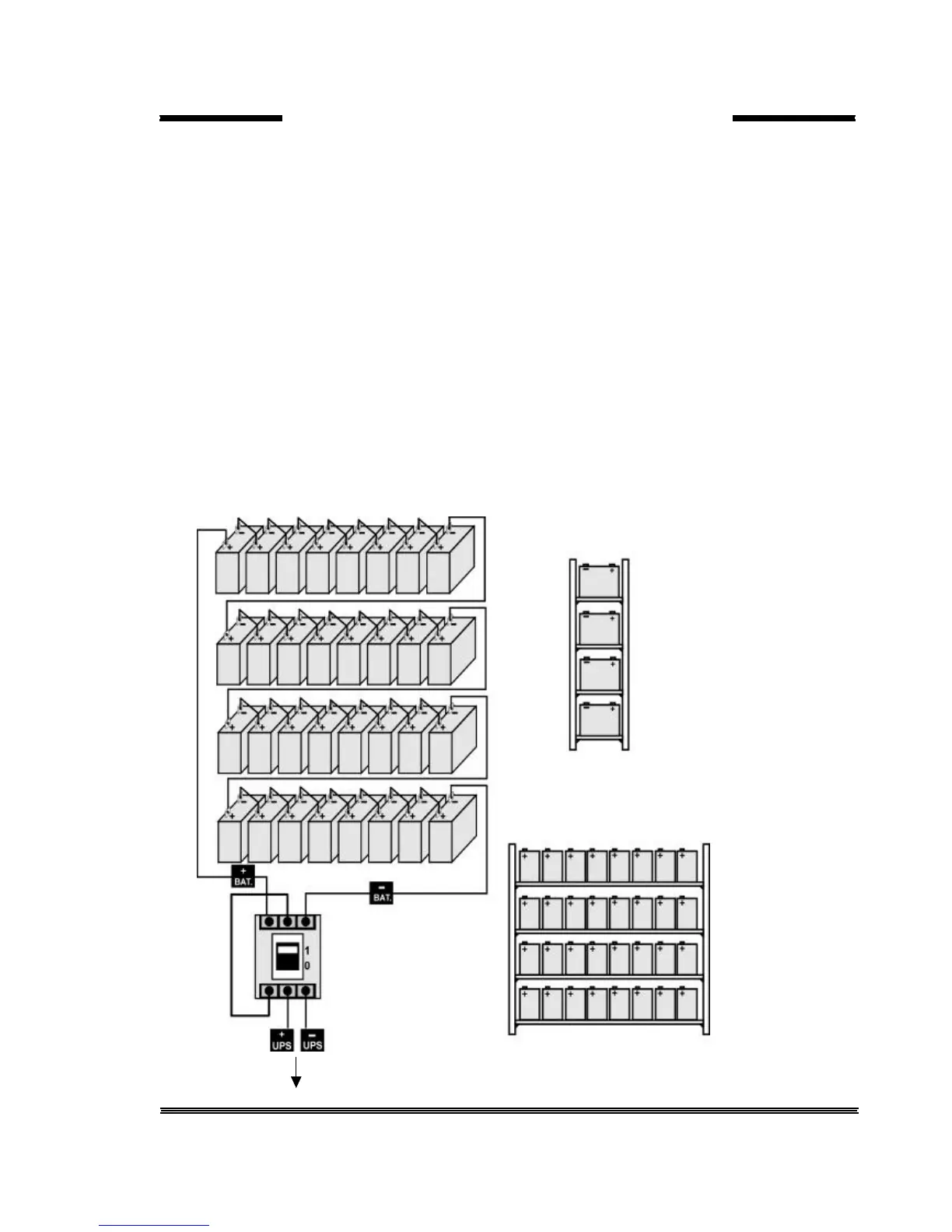 8. Connect the battery circuit breaker’s “UPS(+) ⇒ BATT(+)” and “UPS (-) ⇒ BATT(-)” Ports to the battery