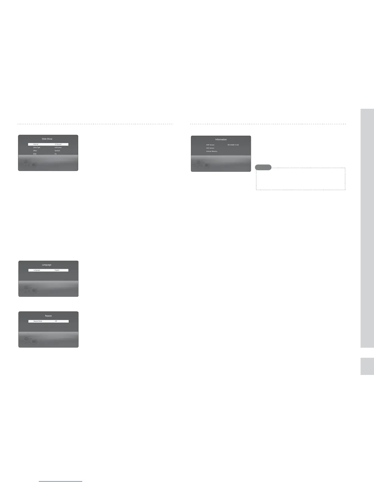 mode for slide show, mp3, and movie.