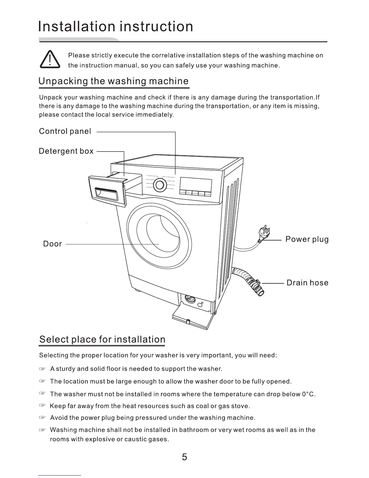 BPL BFAFL65WX1 - Installation Instruction; Unpacking the Washing Machine; Select Place for Installation