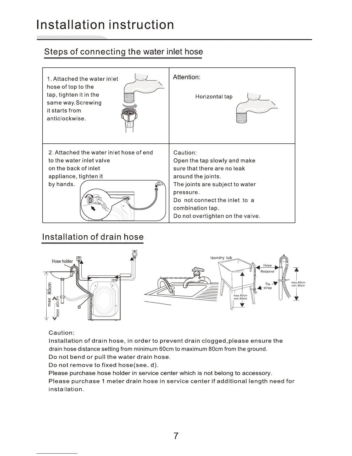 BPL BFAFL65WX1 - Installation Instruction; Steps of Connecting the Water Inlet Hose; Installation of Drain Hose