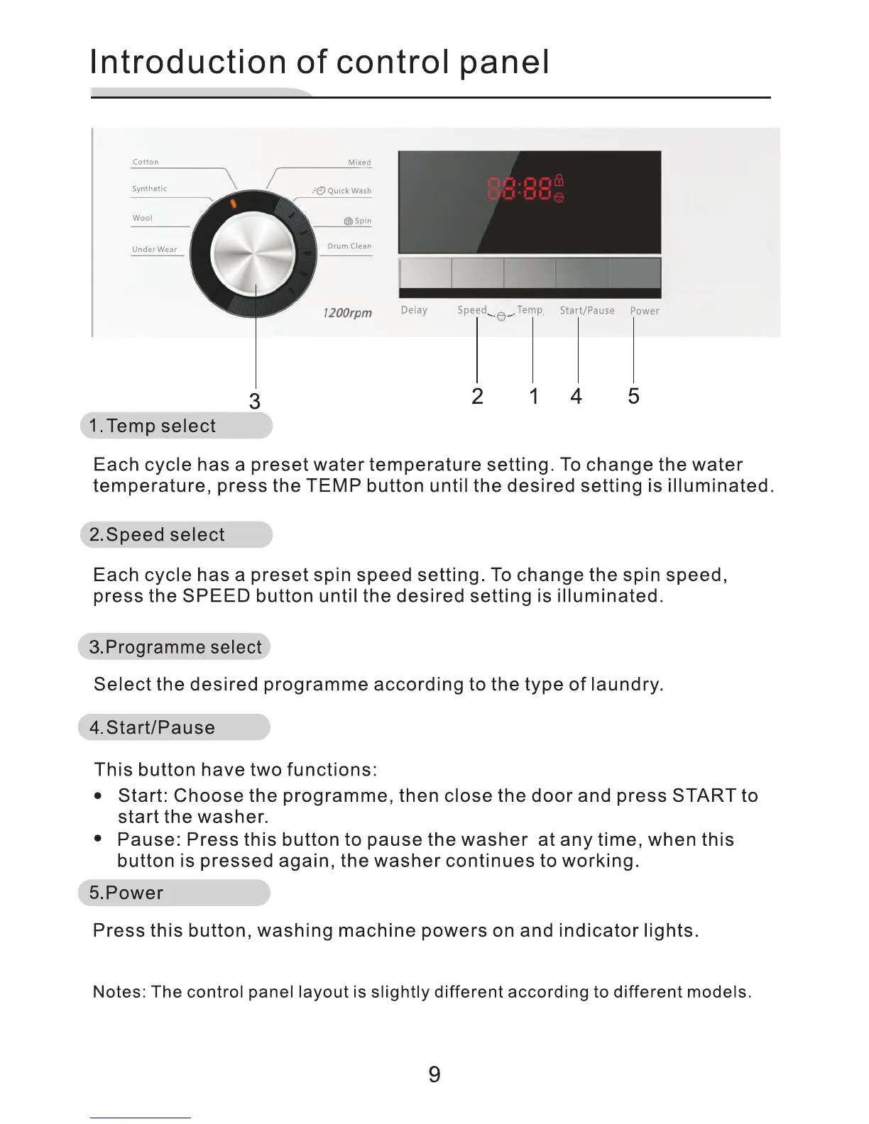 BPL BFAFL65WX1 - Introduction of Control Panel; Temp Select Button; Speed Select Button; Programme Select Dial