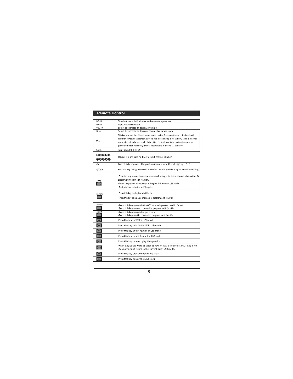 BPL EDN97VH1 - Remote Control; Remote Button Functions
