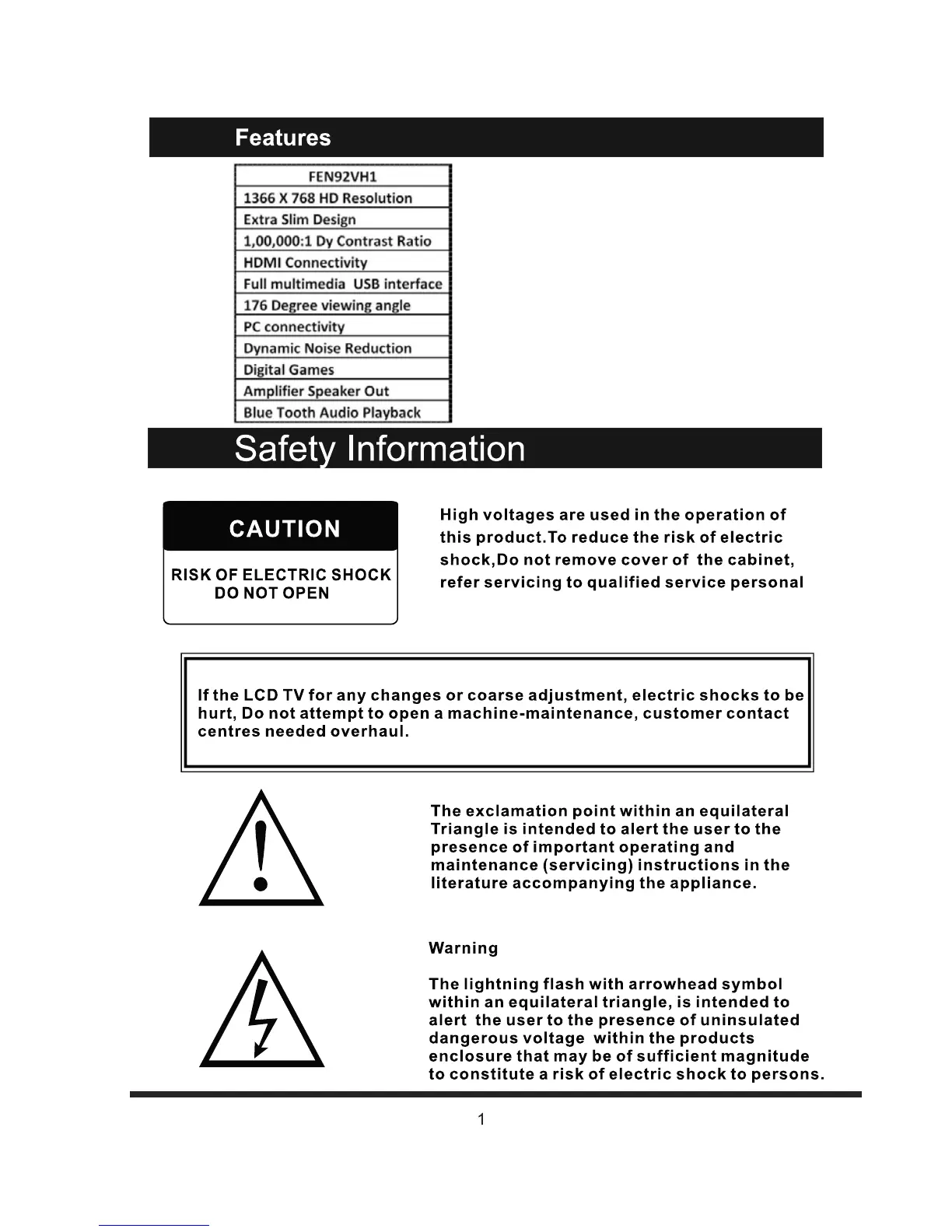 BPL FEN92VH1 - Safety Information; General Safety Warnings