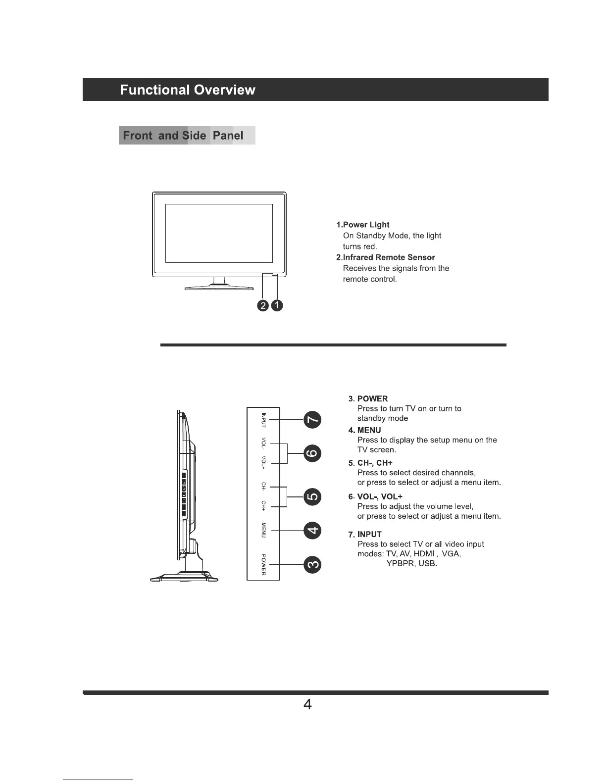 BPL FEN92VH1 - Functional Overview; Front and Side Panel