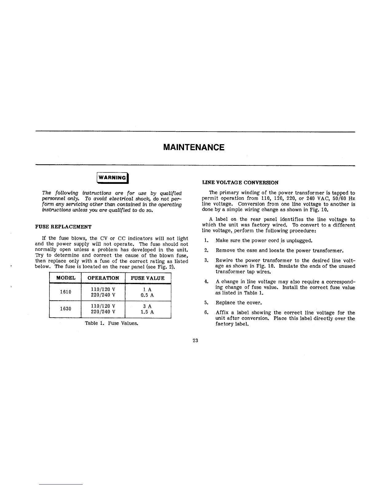 B+K precision 1610 - Maintenance; Fuse Replacement; Line Voltage Conversion