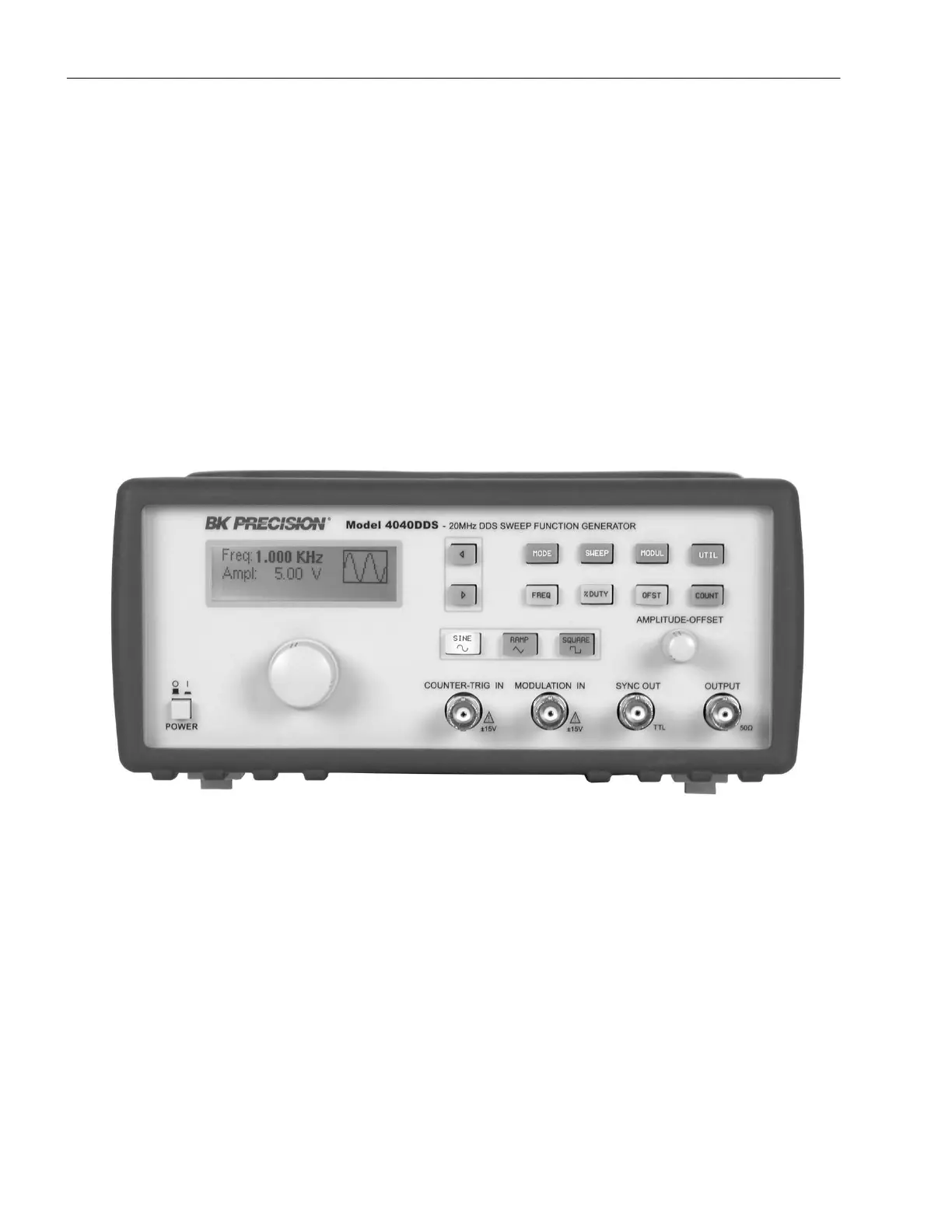 This section describes the displays, controls and connectors of the MODEL 4040DDS - Function Generator.
