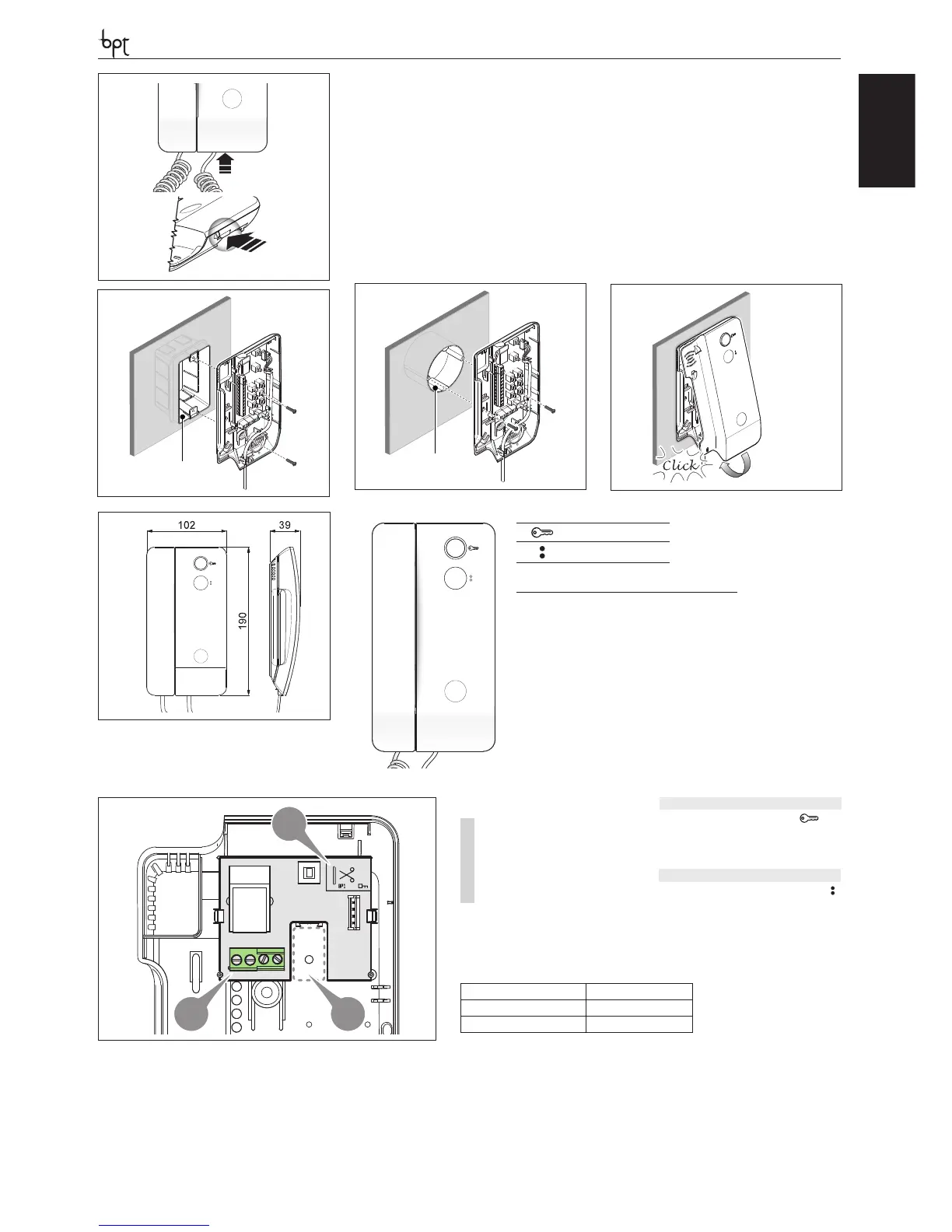 Secure the bottom of the device to the wall box using the screws provided (g. 2 and 3). The box must be installed