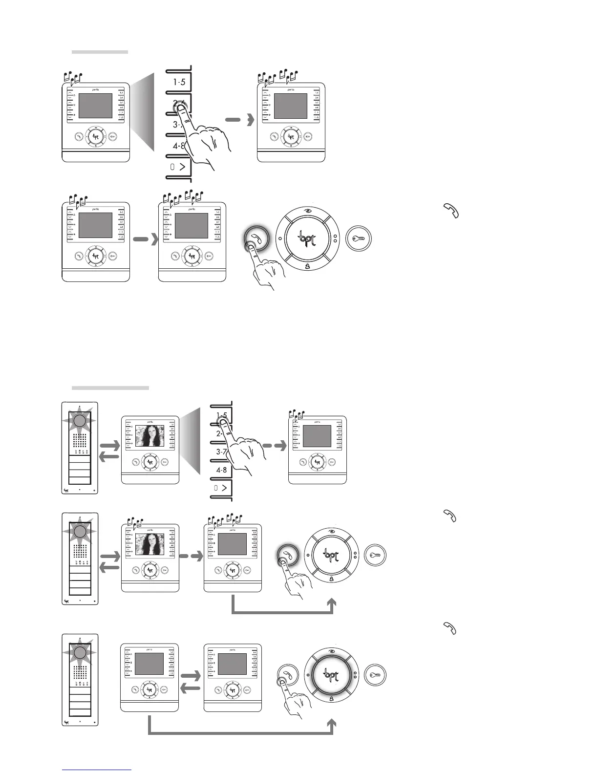 During a conversation between indoor receivers, a call from an entry panel is signalled to