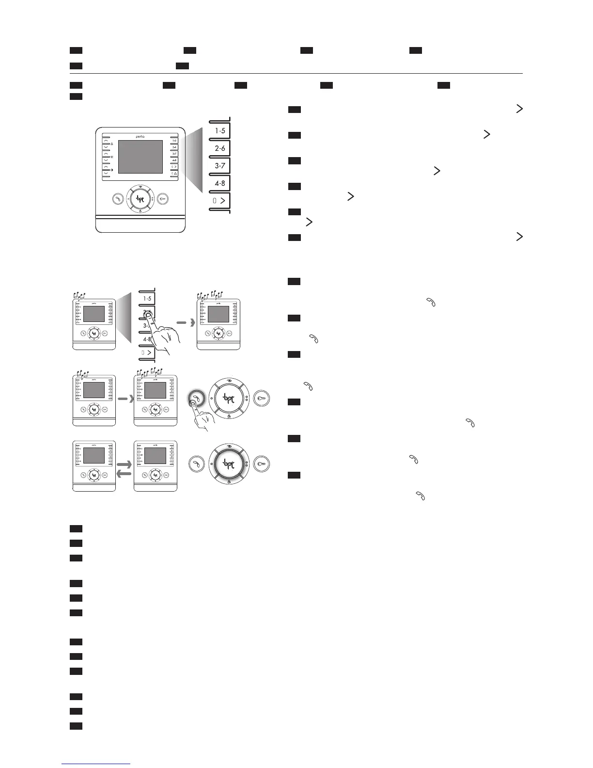 Press the relative buttons to call extensions 1 to 4; press the button (LED on) to