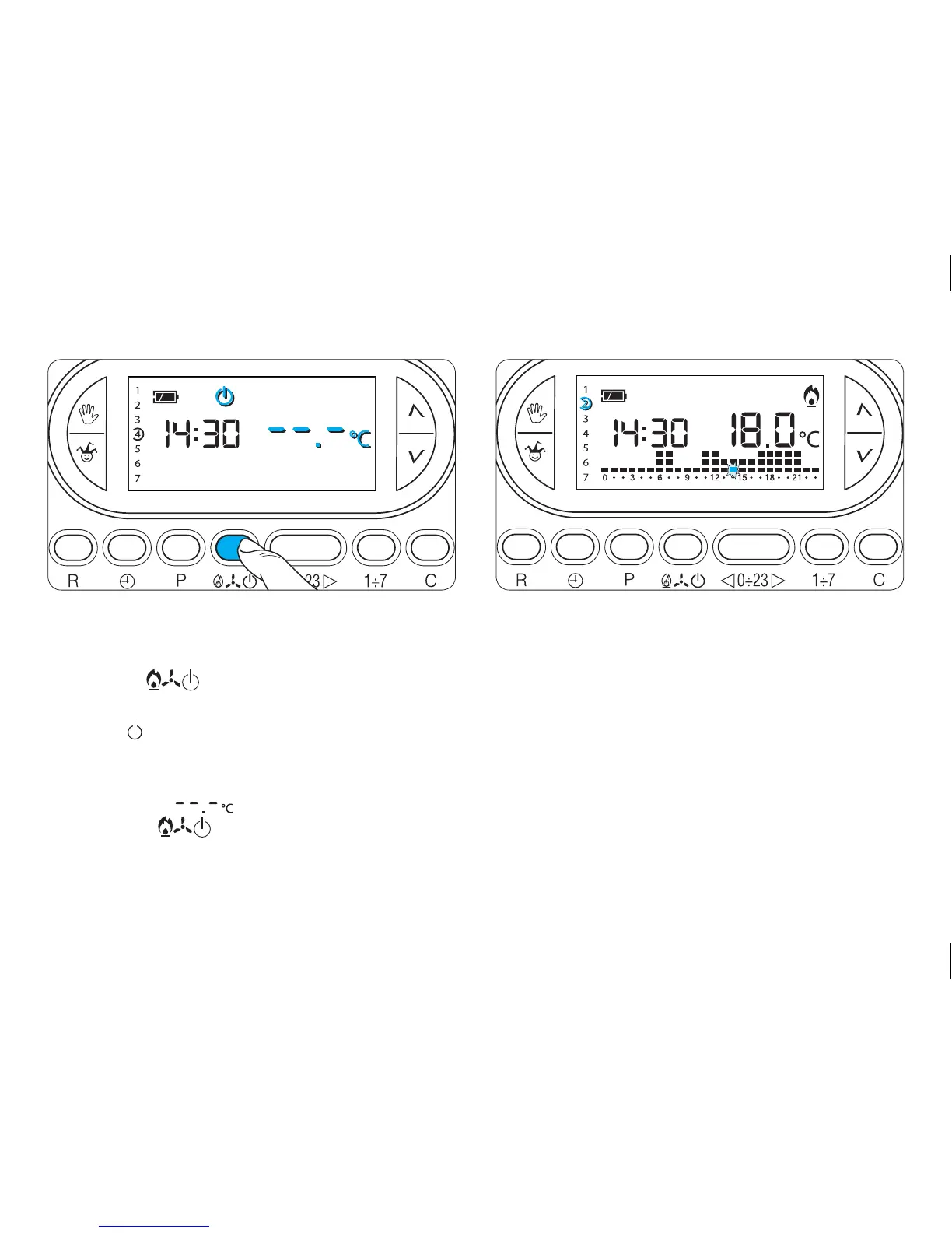 Press button again to restore the heating
