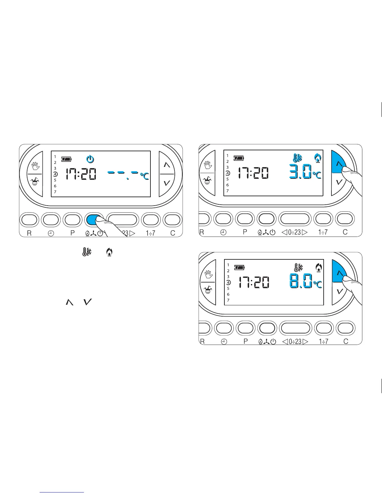 13.4- Press the or button to select any temper-