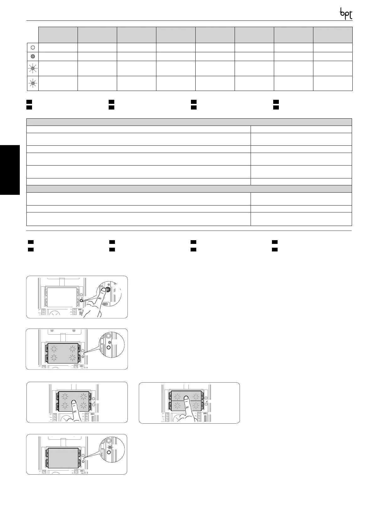 Programming of the Key Type. Press the rst key of the entry panel in the position indicated c/cA until the backlighting LED stops ashing d and remains lit.
