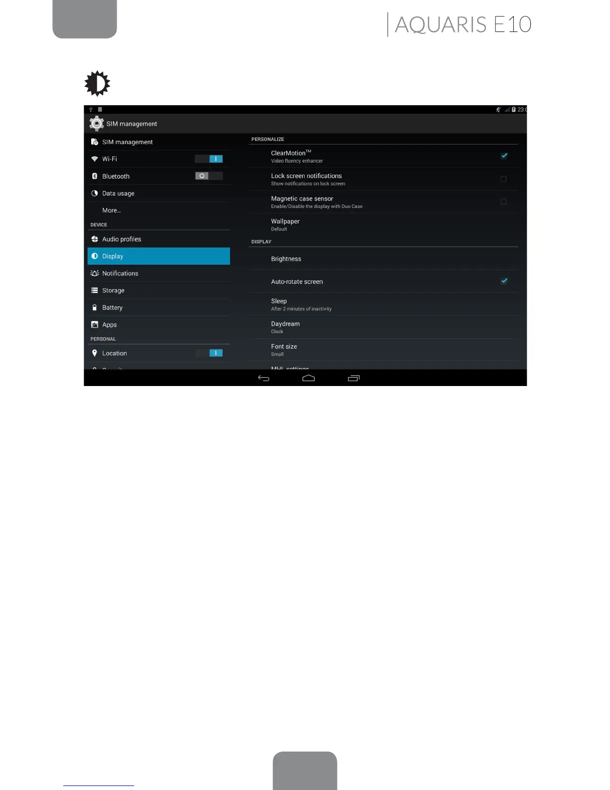 Brightness: Adjust the screen brightness level.