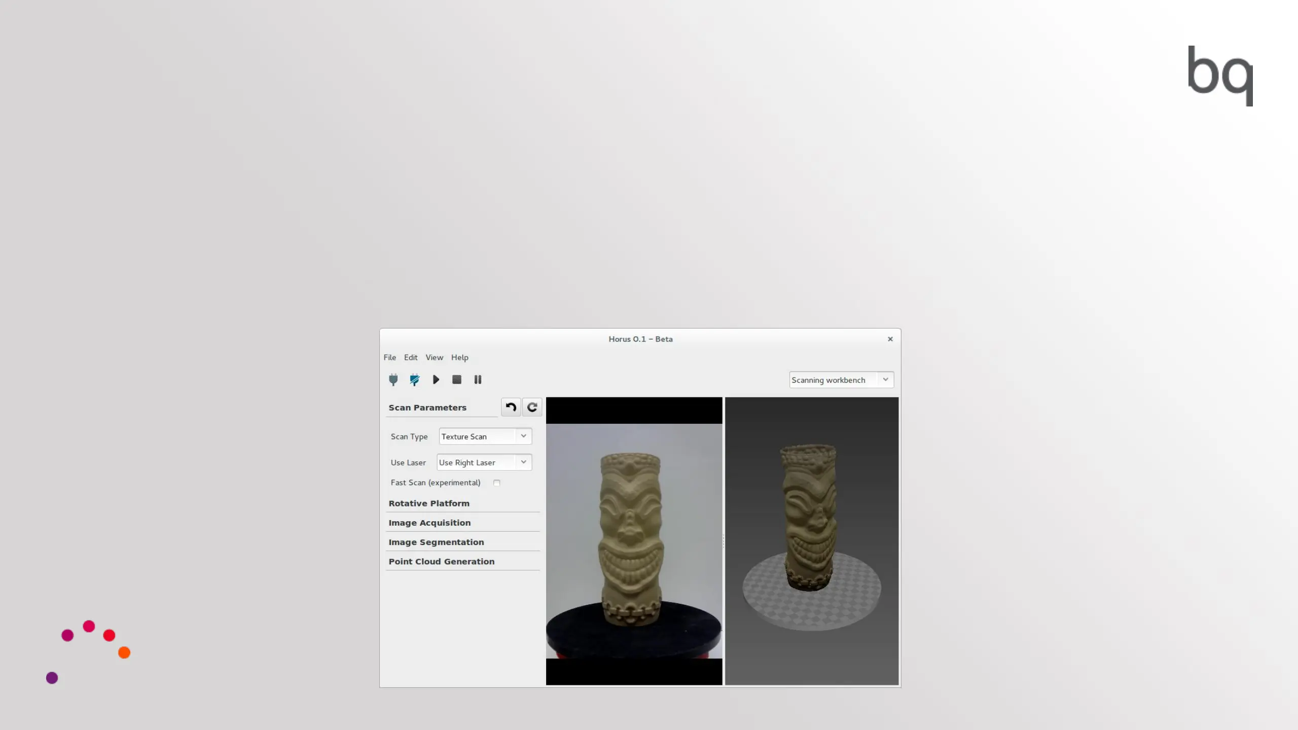 Scan Type: Without Texture / With Texture. In the second case, the real color of the piece is