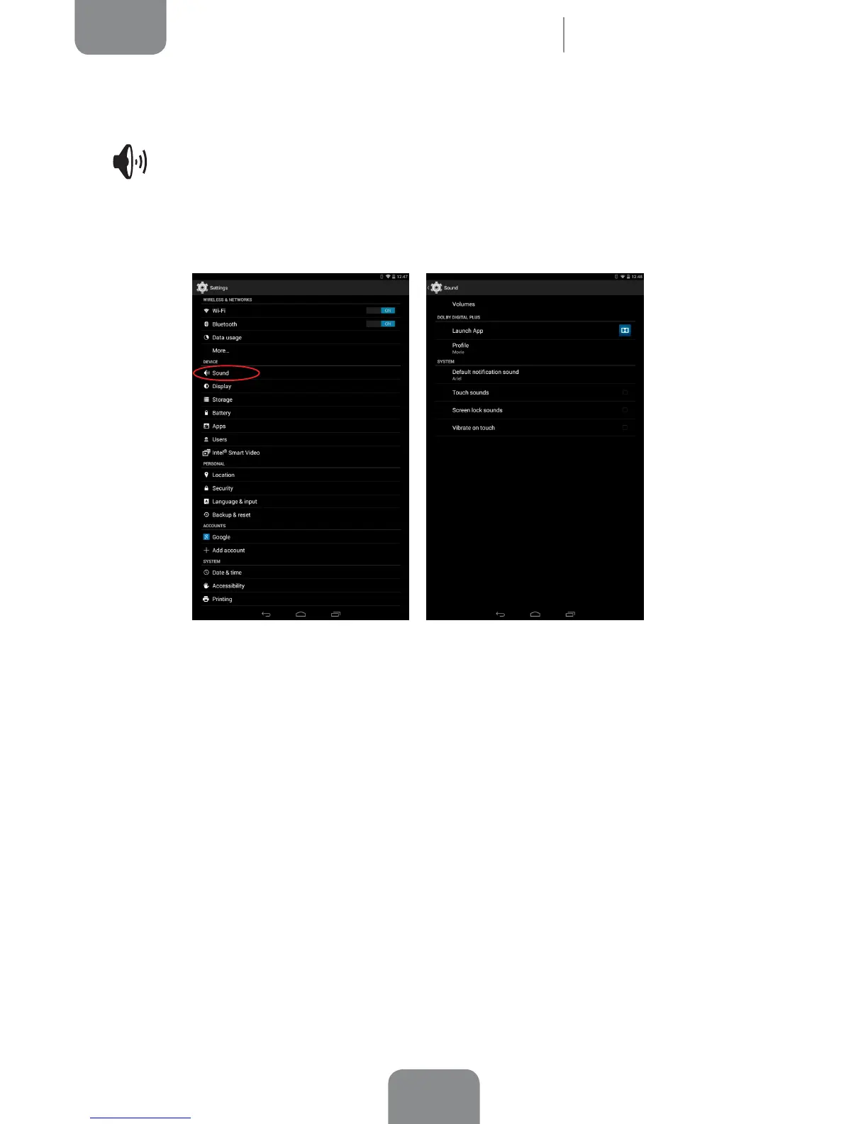 features such as Touch sounds, Screen lock sounds and Vibrate on touch.