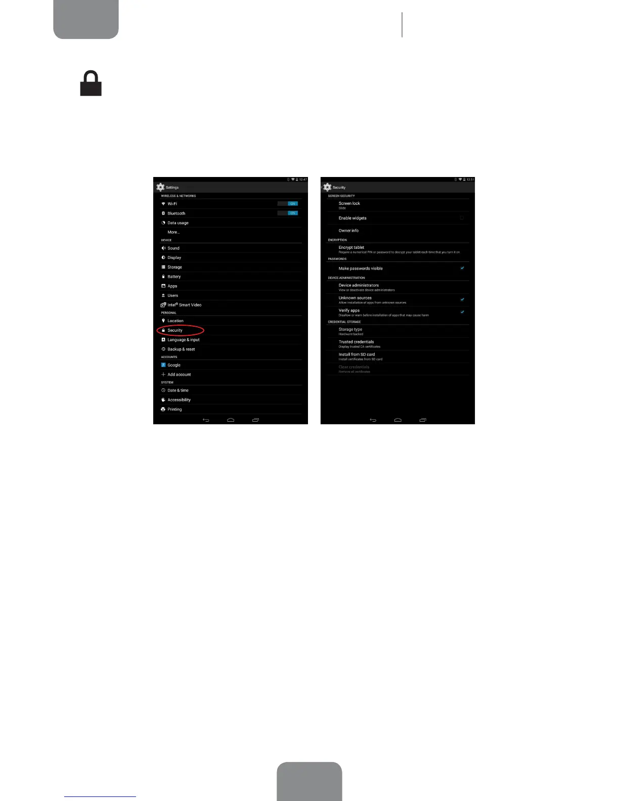 Here you can congure your tablet’s Screen lock (i.e. the type of lock and the owner