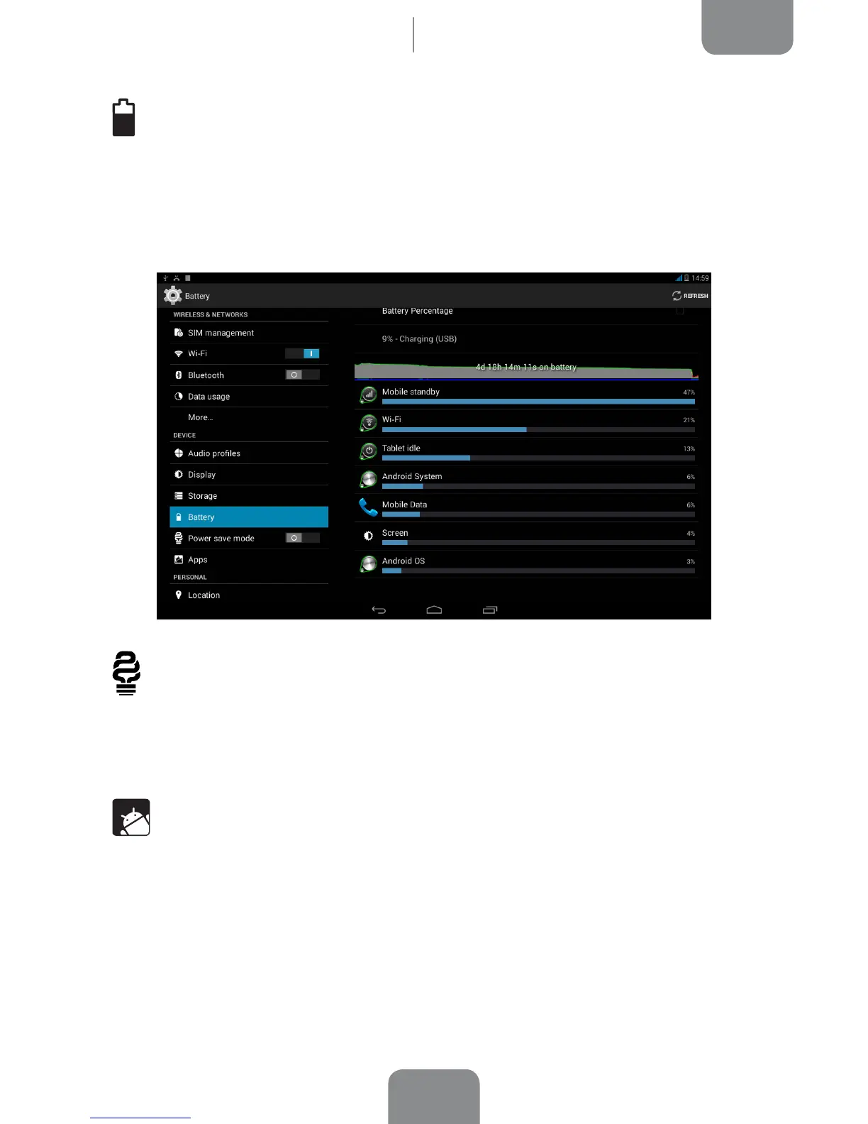 You can also view a graph showing battery duration and usage. Press the graph or