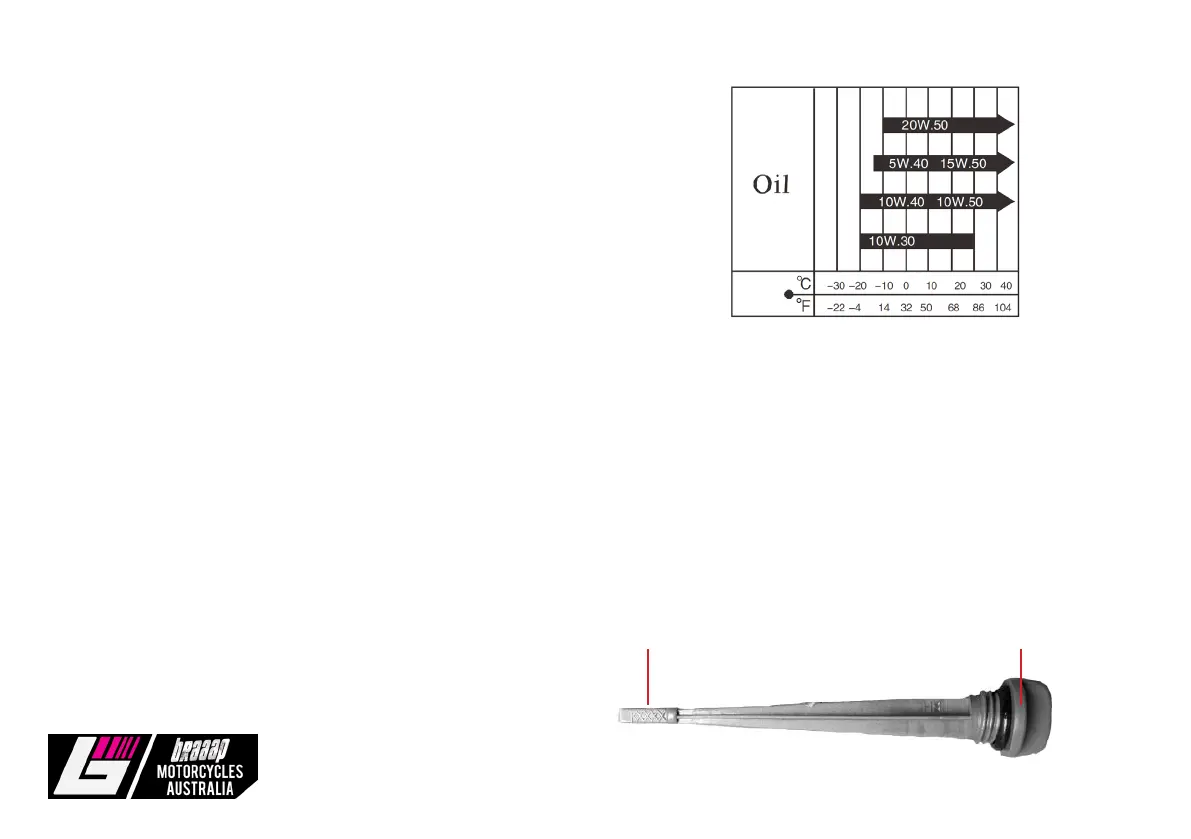 Check oil before riding. Check oil on flat ground with side stand down.