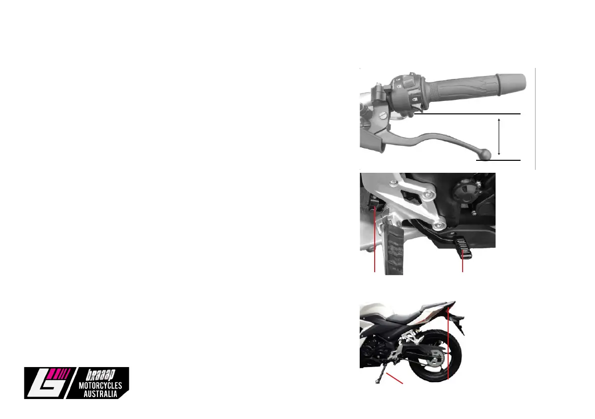 1. The free moving distance of the rear brake pedal should be 15-25mm.