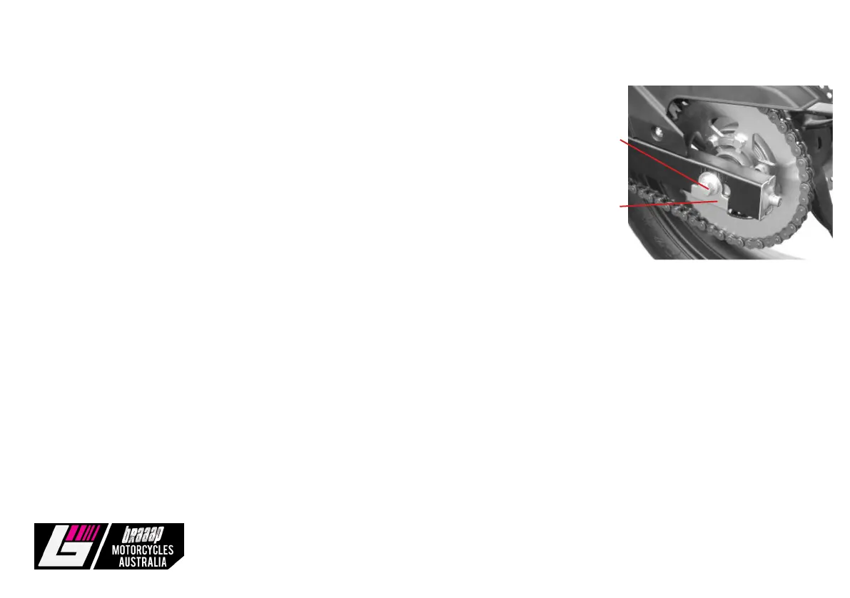2. Screw off nut on rear wheel axle and locking nut when adjustment is required,