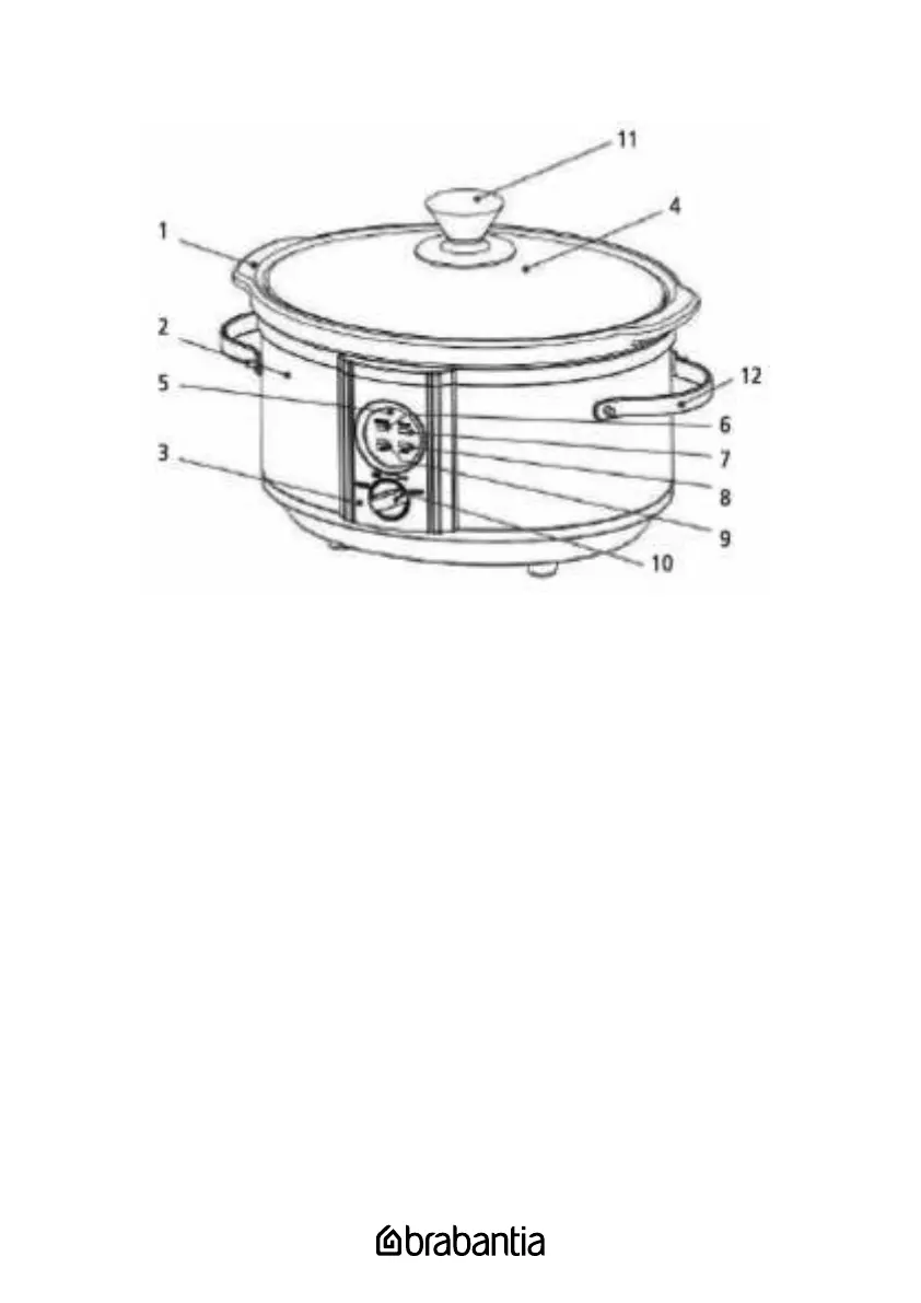 4: Tempered glass lid 10: Control knob