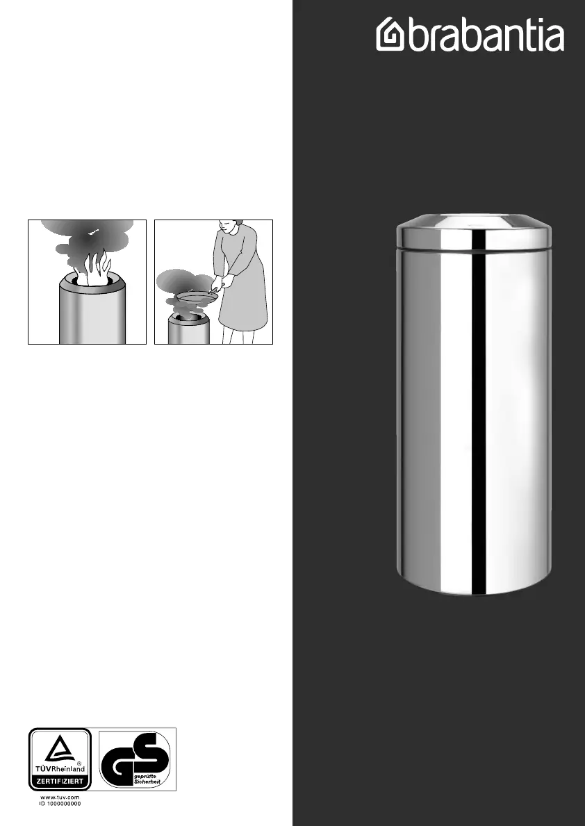 Hoewel deze prullenbak is voorzien van een vlamdover, bestaat er een