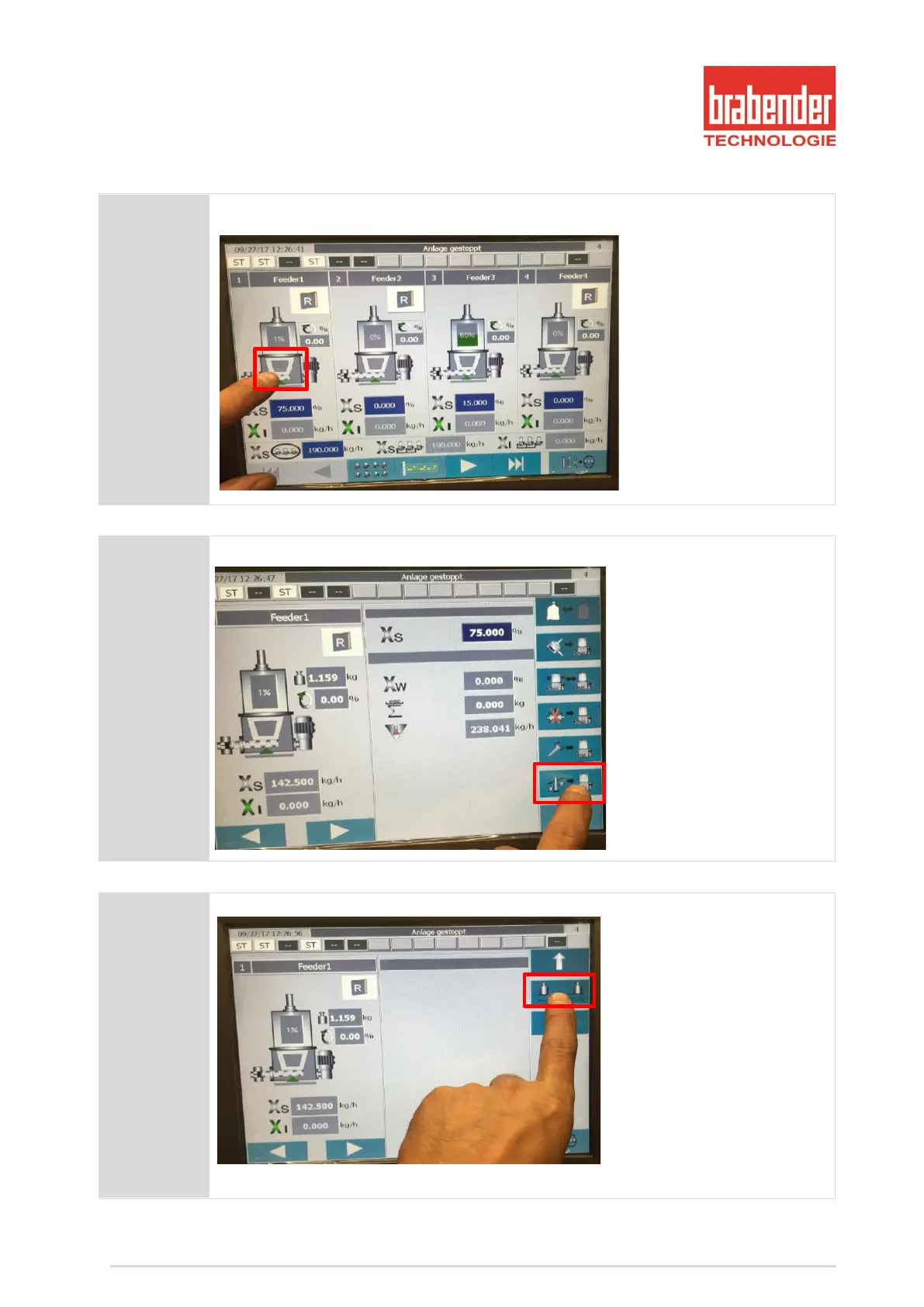 Brabender OP12 - Step 4: Select Scale for Adjustment; Step 5: Adjust Lever Arm (Bottom Right); Step 6: Adjust Lever Arm (Top Right)