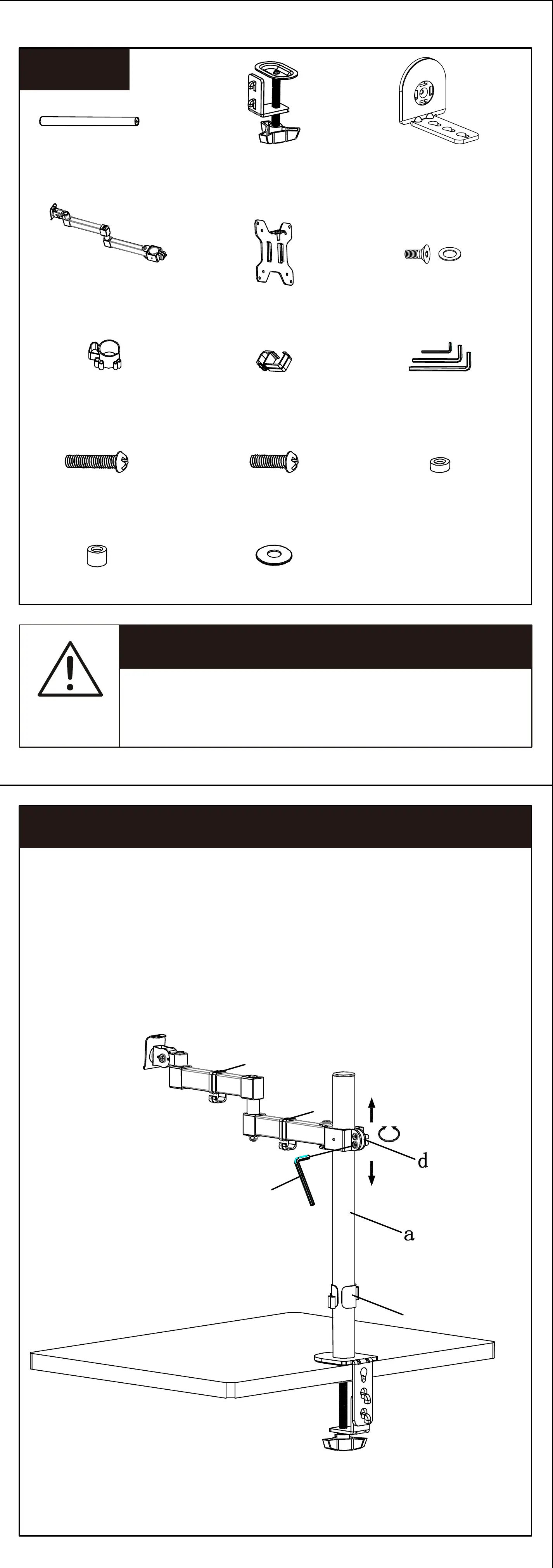 according to the thickness of desk. Tighten the plastic knob to fix it.