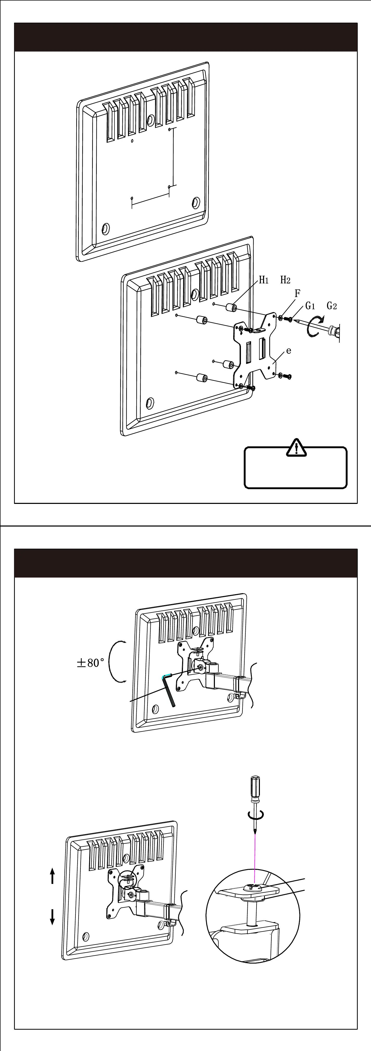 Make adjustment with wrench (i). Manage cables with arm wire clip (h)