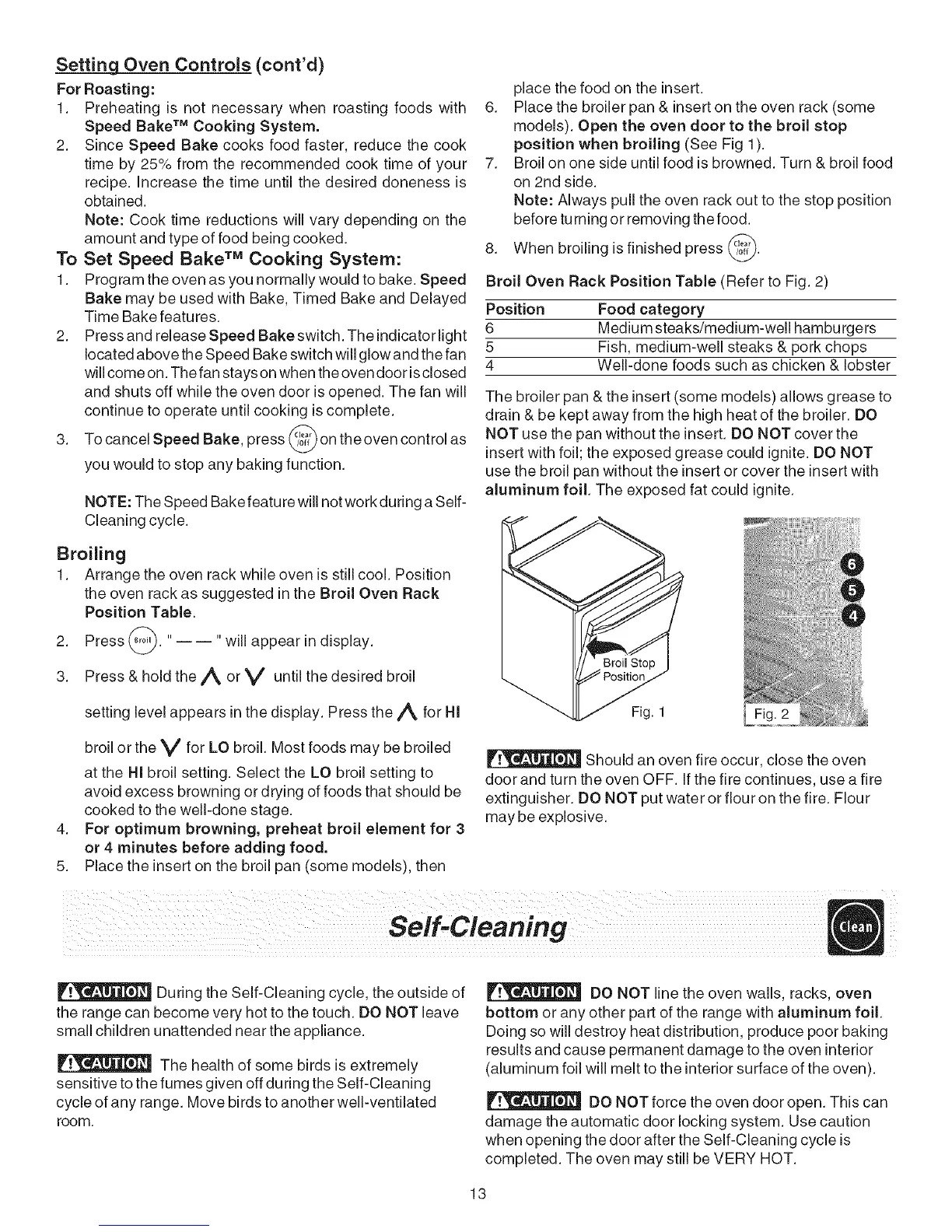 Broil Oven Rack Position Table (Refer to Fig. 2)