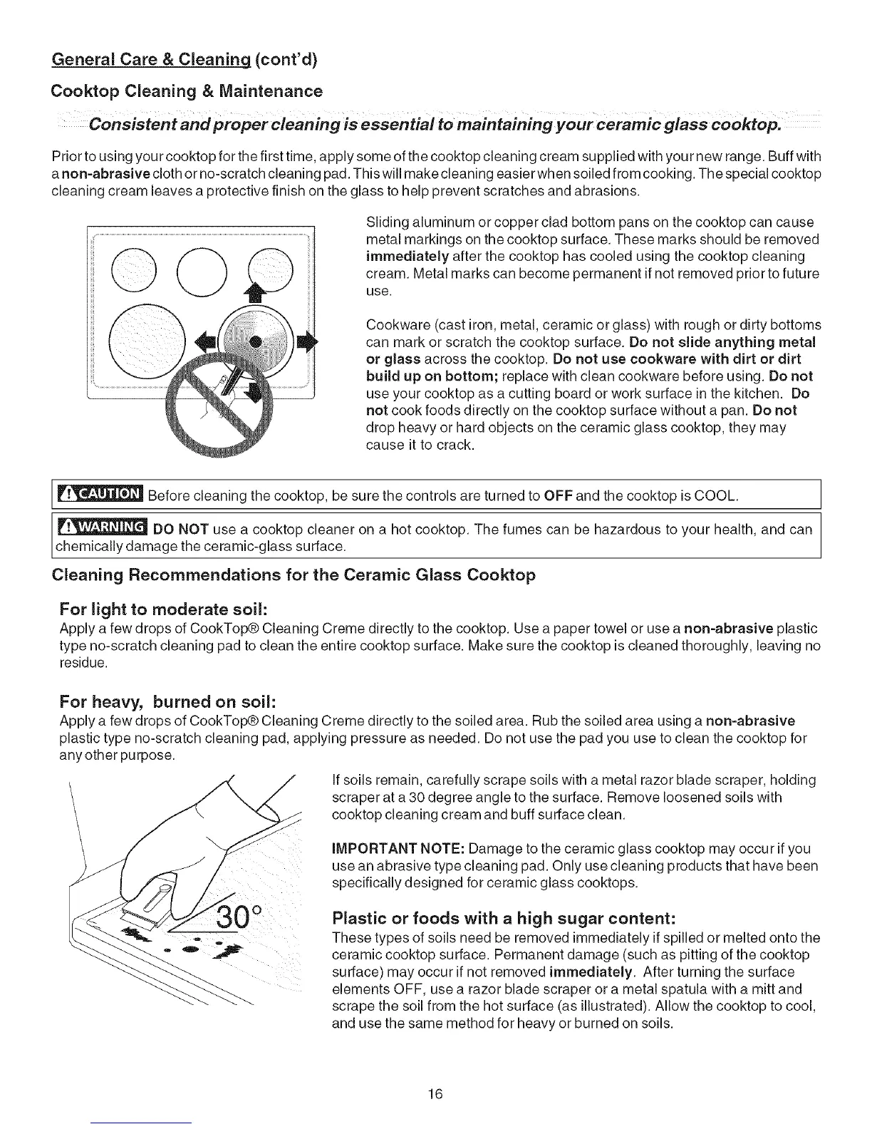 a non-abrasive cloth or no-scratch cleaning pad. This will make cleaning easier when soiled from cooking. The special cooktop
