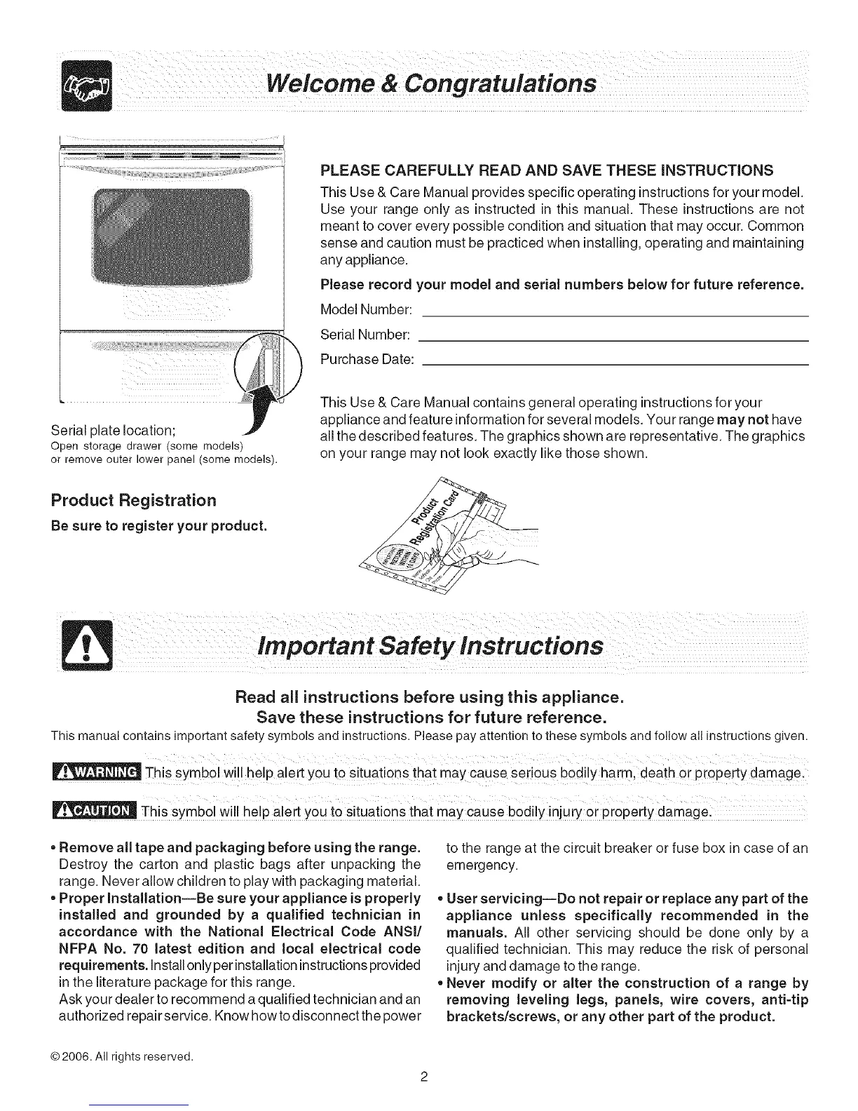 This Use & Care Manual provides specific operating instructionsfor your model.