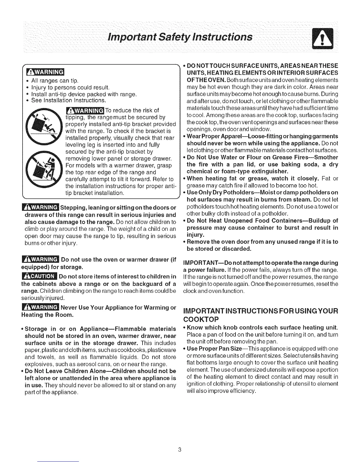 IMPORTANT--Do not attempt to operate the range during