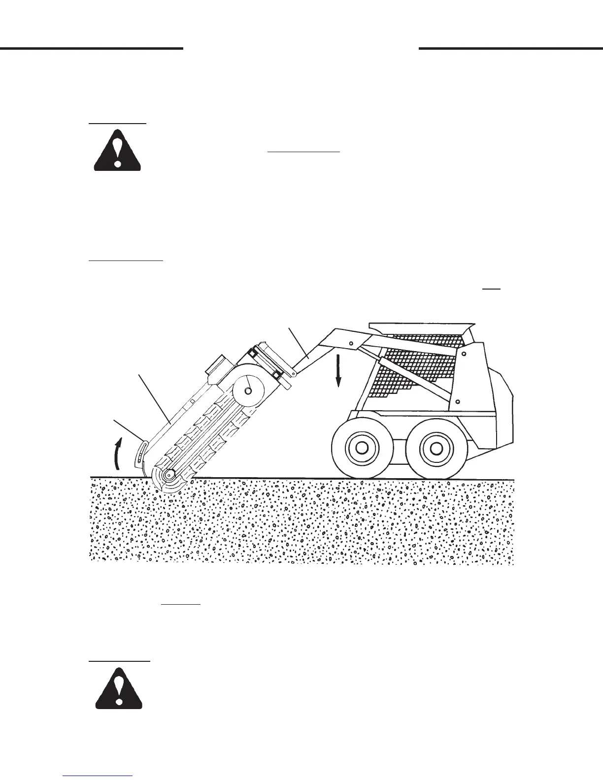 Do this by lowering the trencher with the loader arms. Continue lowering